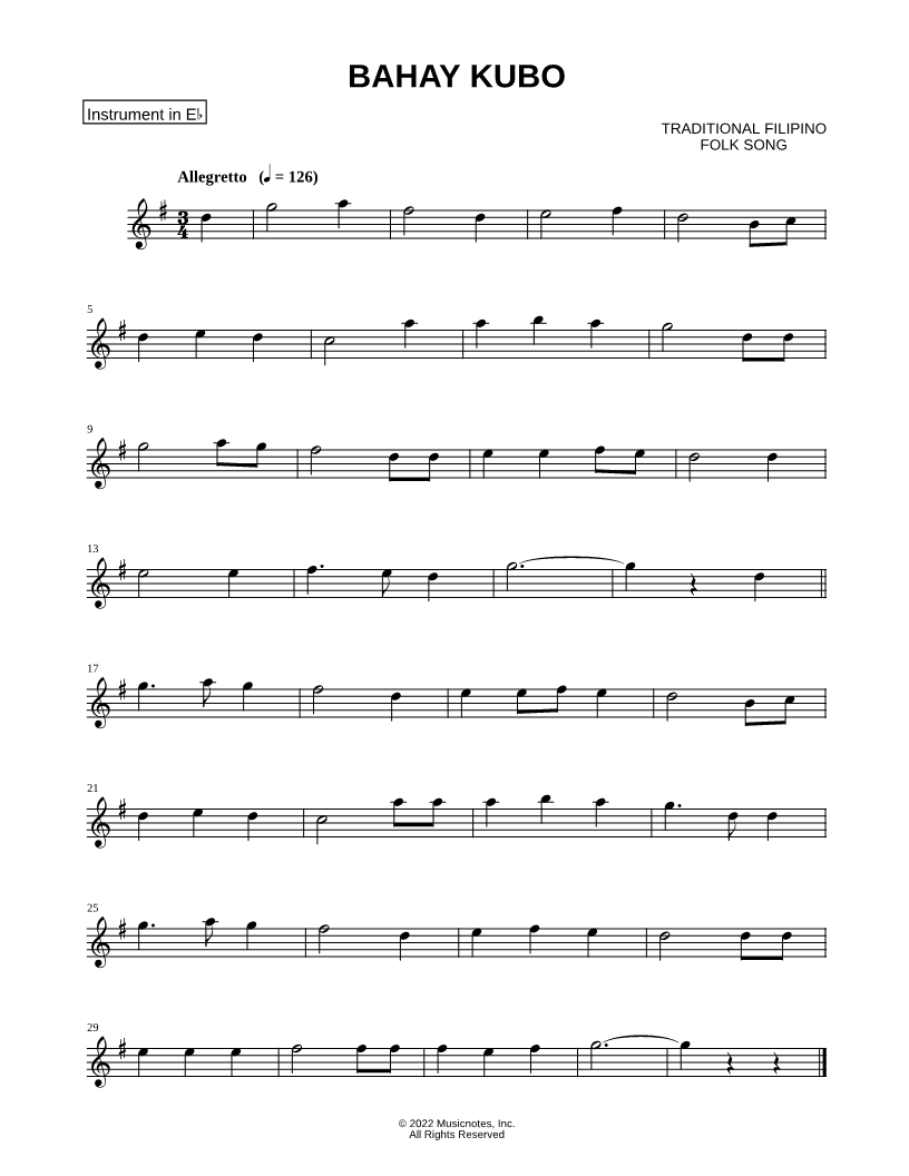 Bahay Kubo - Eb Instrument |