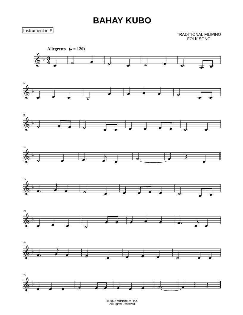 Bahay Kubo - F Instrument |