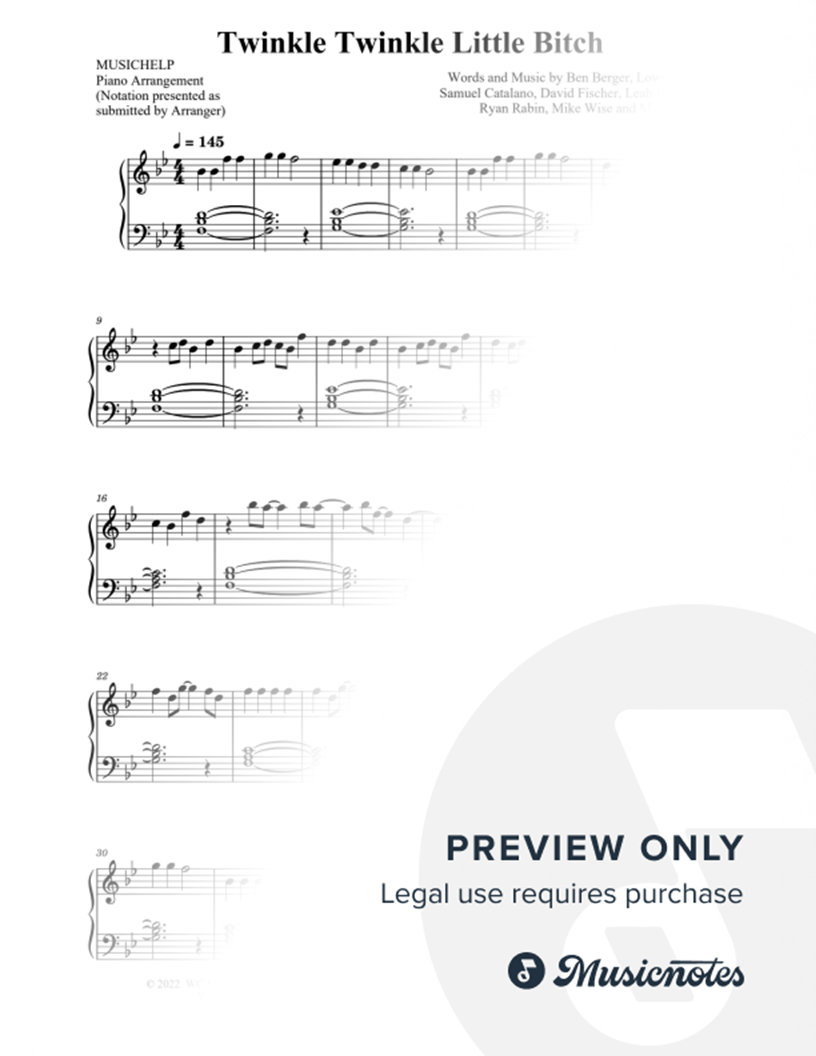 Many of the arrangements on Musicnotes have transpositions available, typically in C Major, as well as 3 sharps and 3 flats. If you do not see your desired key, you can request a transposition by reaching out to Customer Support.