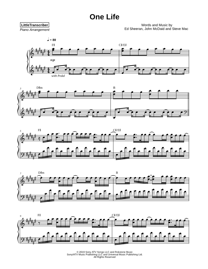 Many of the arrangements on Musicnotes have transpositions available, typically in C Major, as well as 3 sharps and 3 flats. If you do not see your desired key, you can request a transposition by reaching out to Customer Support.