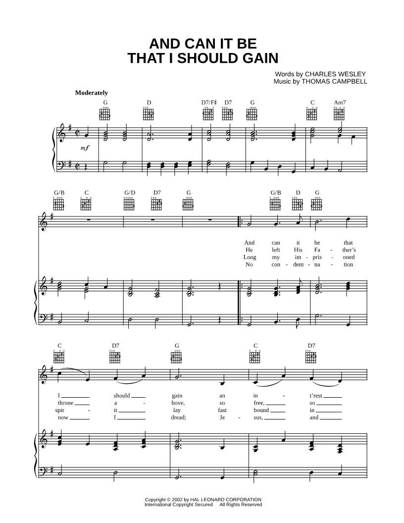 And can it be that I should gain an int'rest in the Savior's blood? |