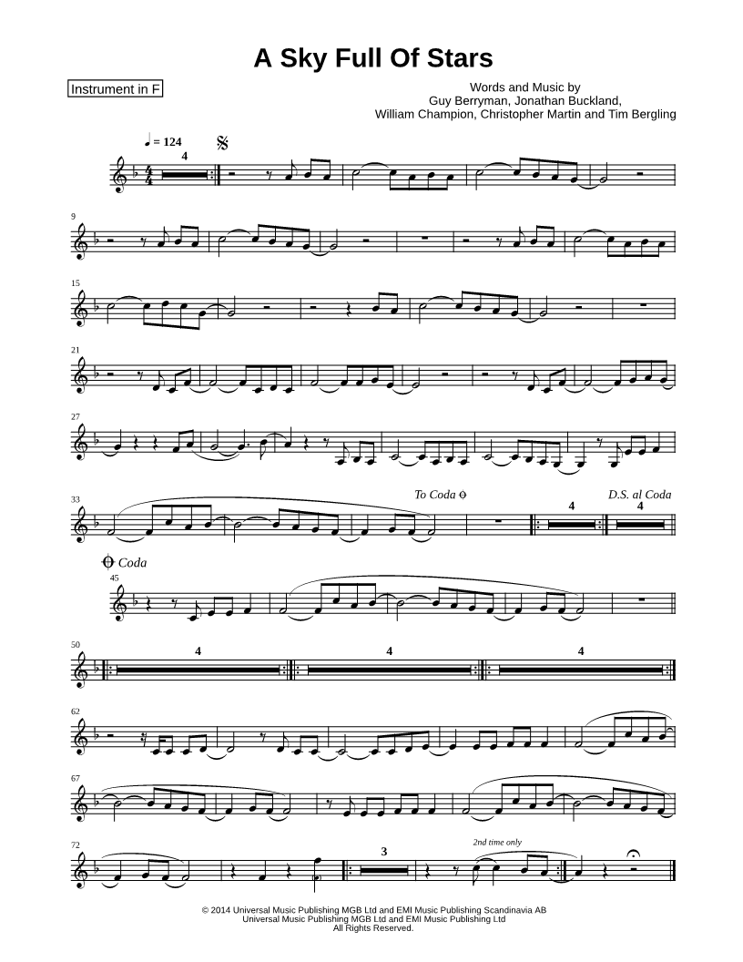 A Sky Full of Stars - F Instrument |