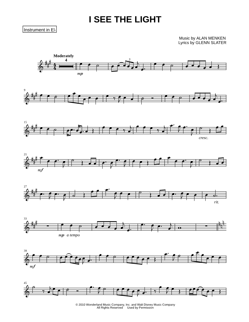I See the Light - Eb Instrument |