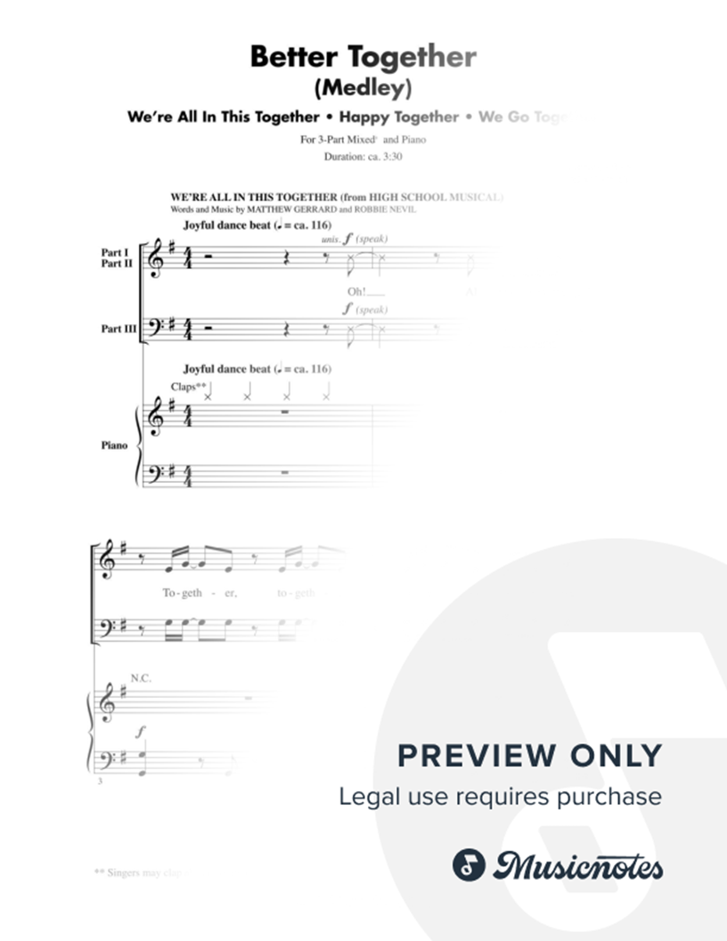 Many of the arrangements on Musicnotes have transpositions available, typically in C Major, as well as 3 sharps and 3 flats. If you do not see your desired key, you can request a transposition by reaching out to Customer Support.