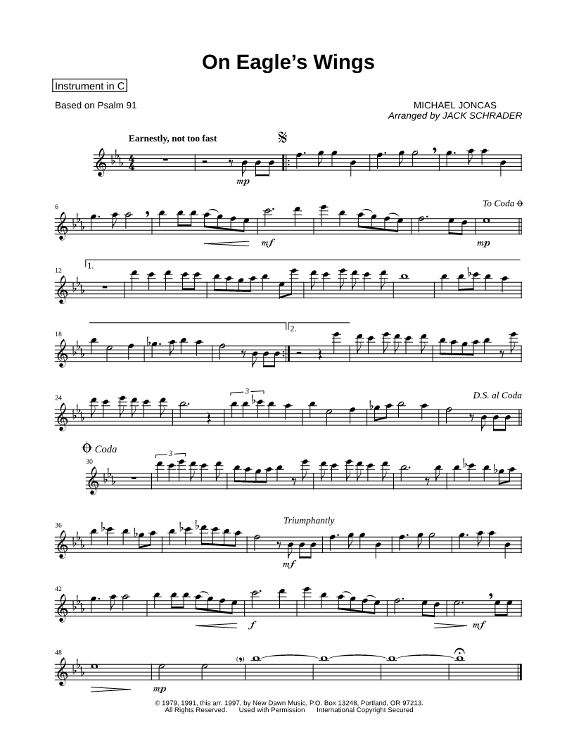 On Eagle's Wings - C Instrument |