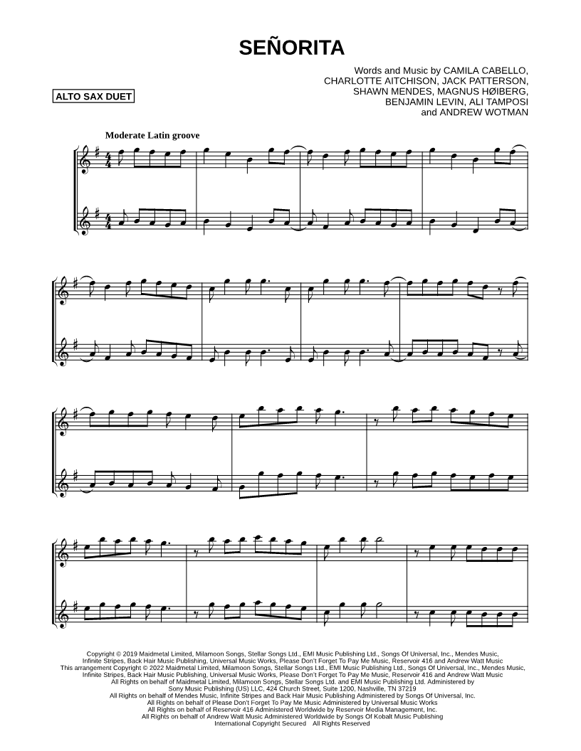Señorita - Alto Saxophone Duet |