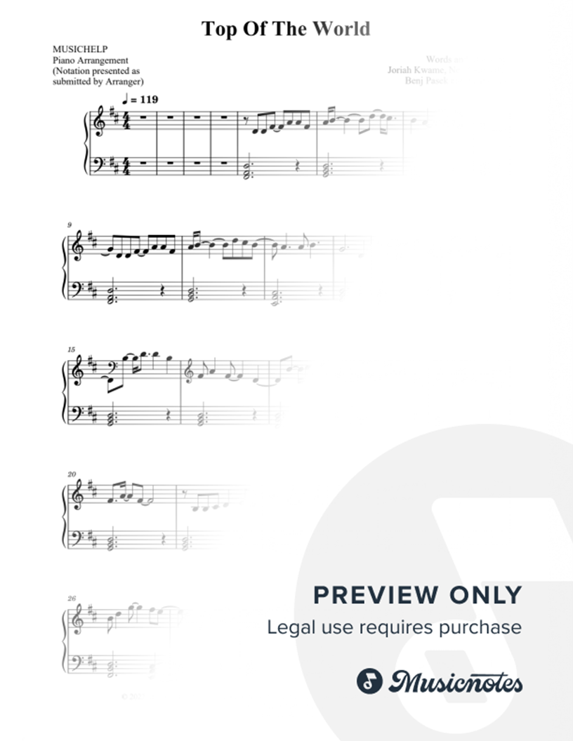 Many of the arrangements on Musicnotes have transpositions available, typically in C Major, as well as 3 sharps and 3 flats. If you do not see your desired key, you can request a transposition by reaching out to Customer Support.