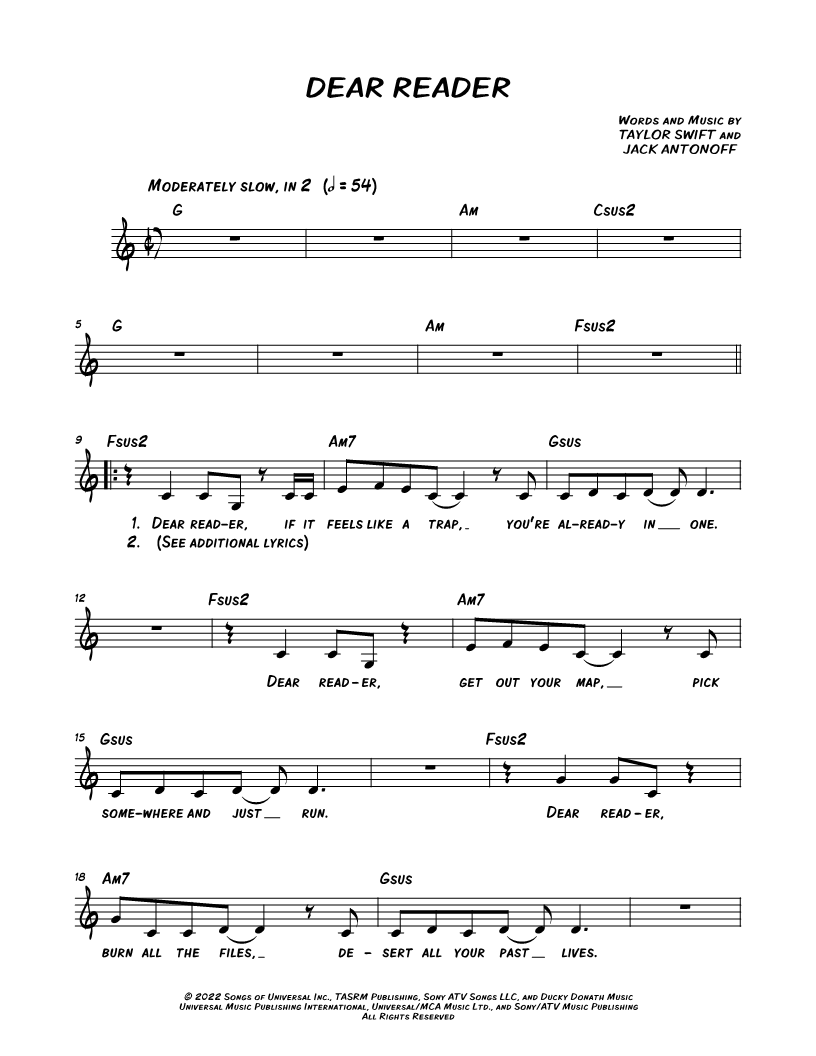 Leadsheets typically only contain the lyrics, chord symbols and melody line of a song and are rarely more than one page in length. Musicians will often use these skeletons to improvise their own arrangements. Leadsheets often do not contain complete lyrics to the song.
