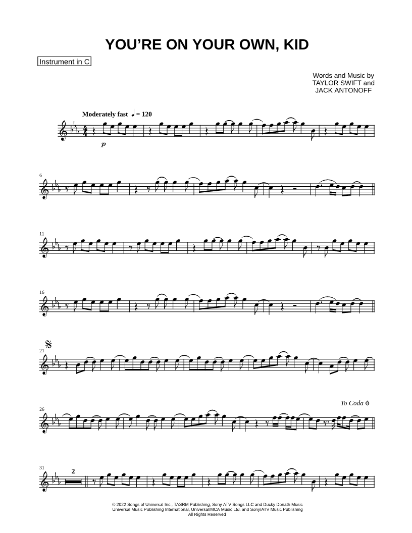 You're on Your Own, Kid - C Instrument |