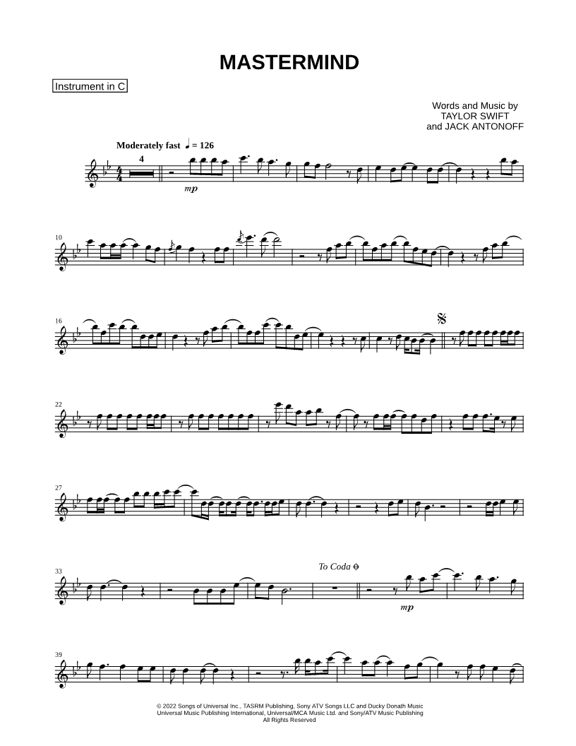 C Instrument, range: Bb4-G6 (Flute, Violin, Oboe or Recorder) | |