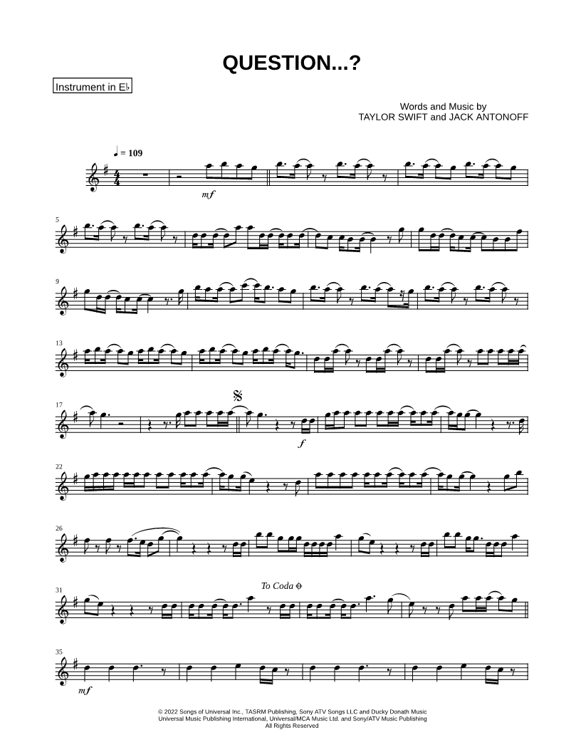 Eb Instrument, range: B4-E6 (Alto Saxophone or Baritone Saxophone) | |