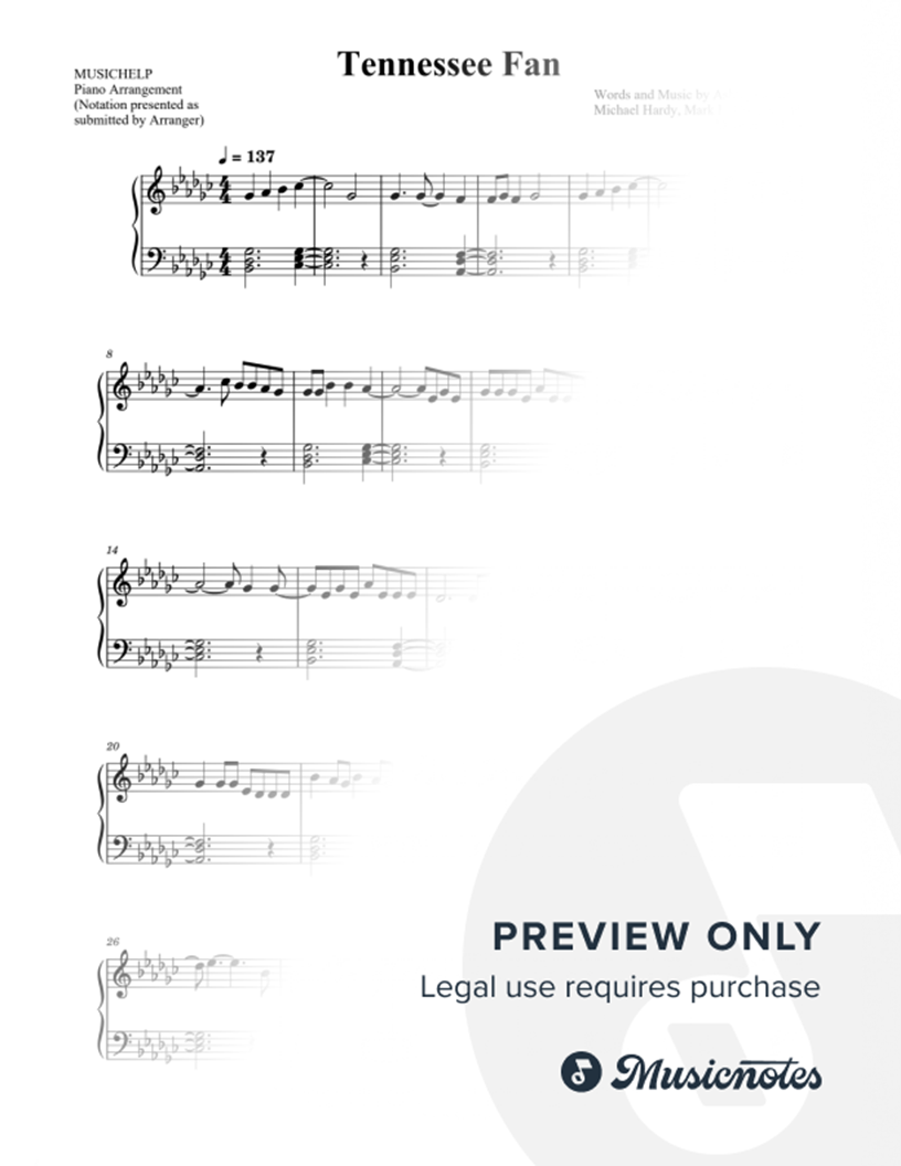 Musicnotes sells a wide variety of digital sheet music products including Singer Pros, Beginner Notes, Choral music, Piano Solos, Lead Sheets, Piano/Vocal/Guitar, Solo and Accompaniment, and fretted instrument tablature.
