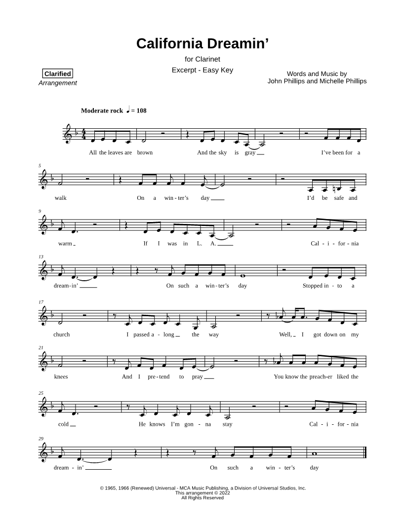 California Dreamin' [excerpt - easy] |