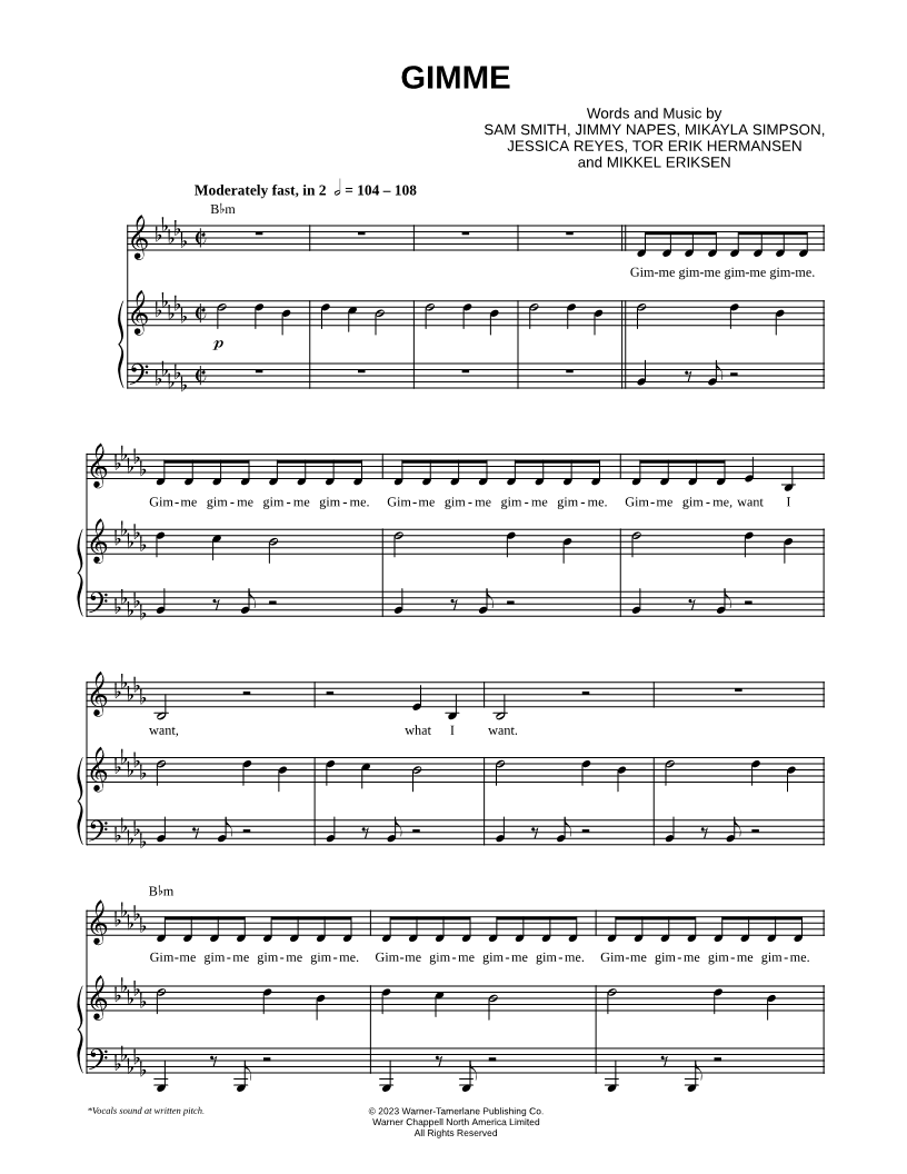Voice, range: Ab3-Bb4 Piano Backup Vocals | |