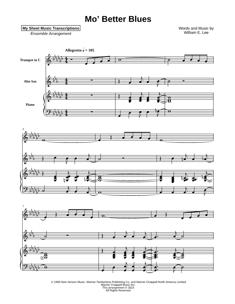 C Trumpet, range: Db4-F5 or Trumpet Alto Saxophone, range: D4-Bb5 Piano | |