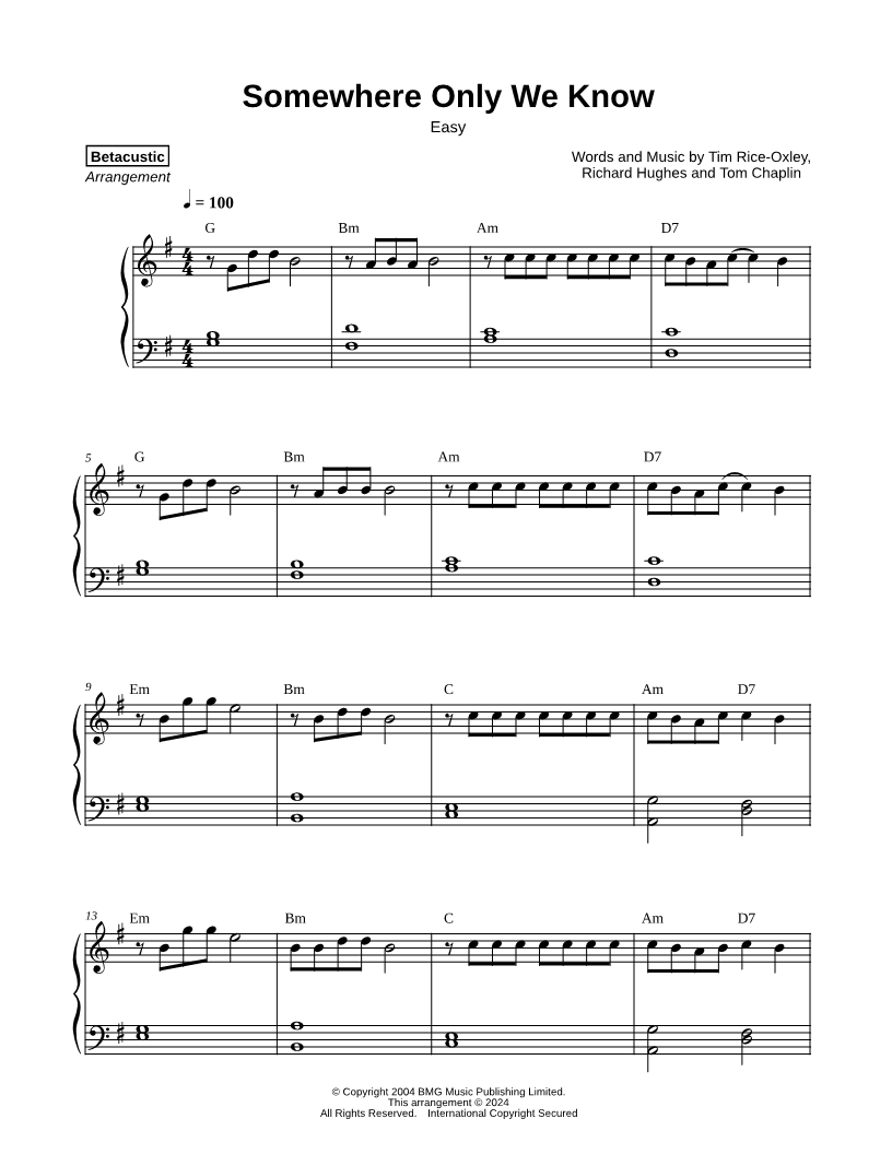Somewhere Only We Know [easy] |