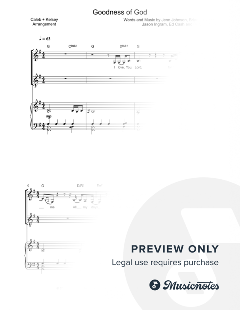 Many of the arrangements on Musicnotes have transpositions available, typically in C Major, as well as 3 sharps and 3 flats. If you do not see your desired key, you can request a transposition by reaching out to Customer Support.