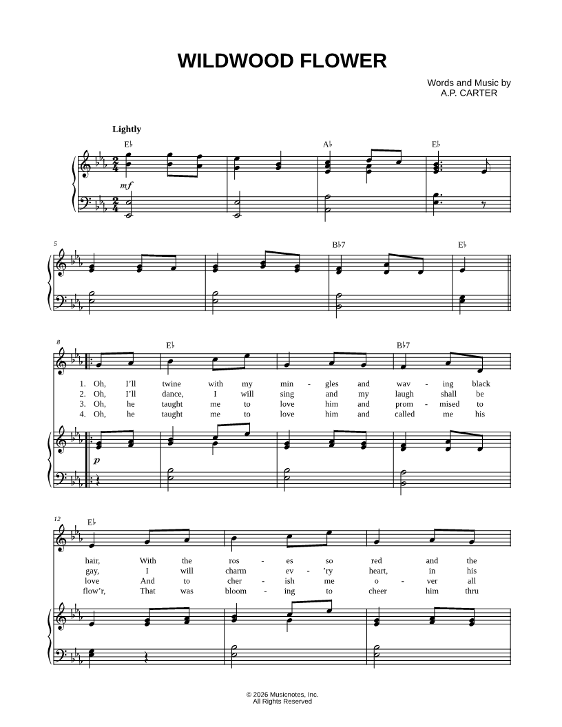 Musicnotes sells a wide variety of digital sheet music products including Singer Pros, Beginner Notes, Choral music, Piano Solos, Lead Sheets, Piano/Vocal/Guitar, Solo and Accompaniment, and fretted instrument tablature.