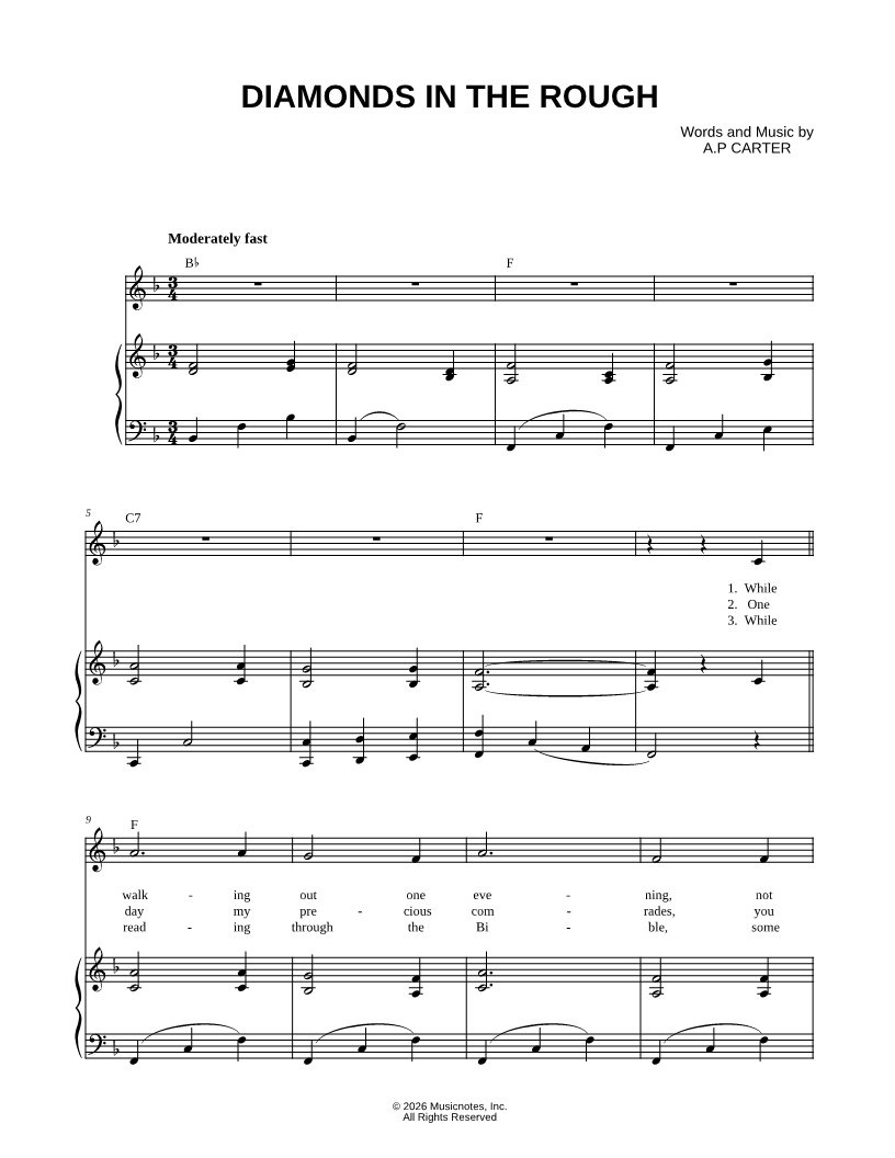 Musicnotes sells a wide variety of digital sheet music products including Singer Pros, Beginner Notes, Choral music, Piano Solos, Lead Sheets, Piano/Vocal/Guitar, Solo and Accompaniment, and fretted instrument tablature.