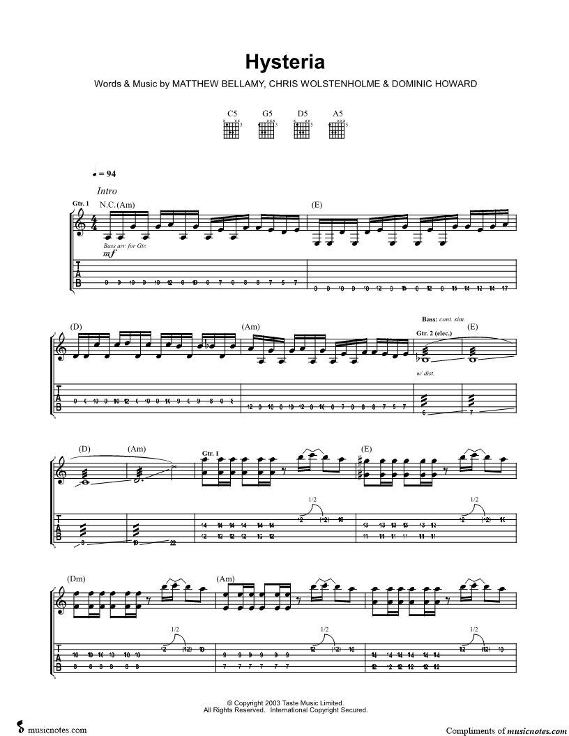 Guitar TAB Guitar/Vocal/Chords |