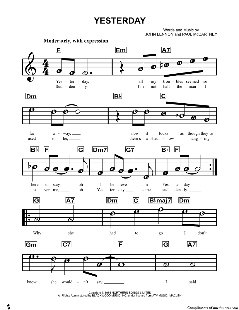 Yesterday, all my troubles seemed so far away, |