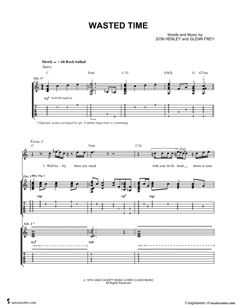 Guitar Tab Guitar/Vocal |