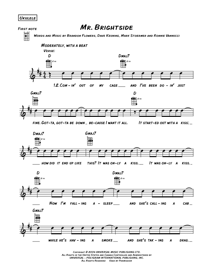 Ukulele/Vocal/Chords Leadsheet |