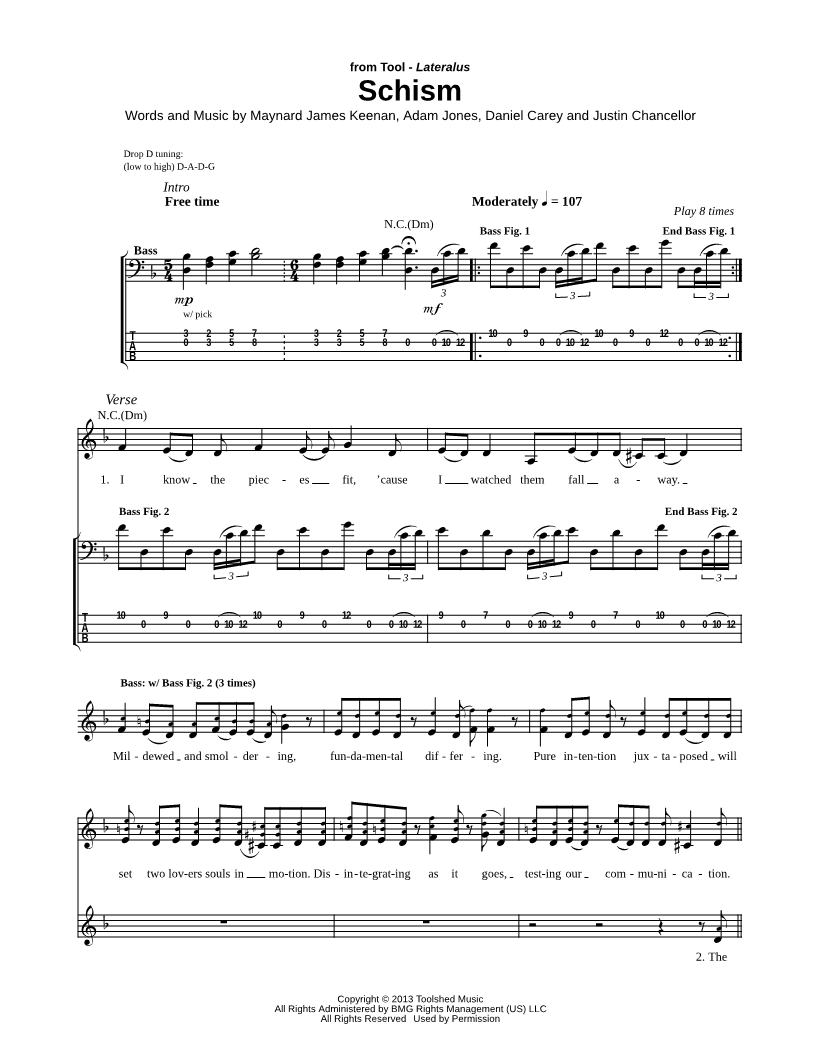 Bass Tab Bass/Vocal/Chords |